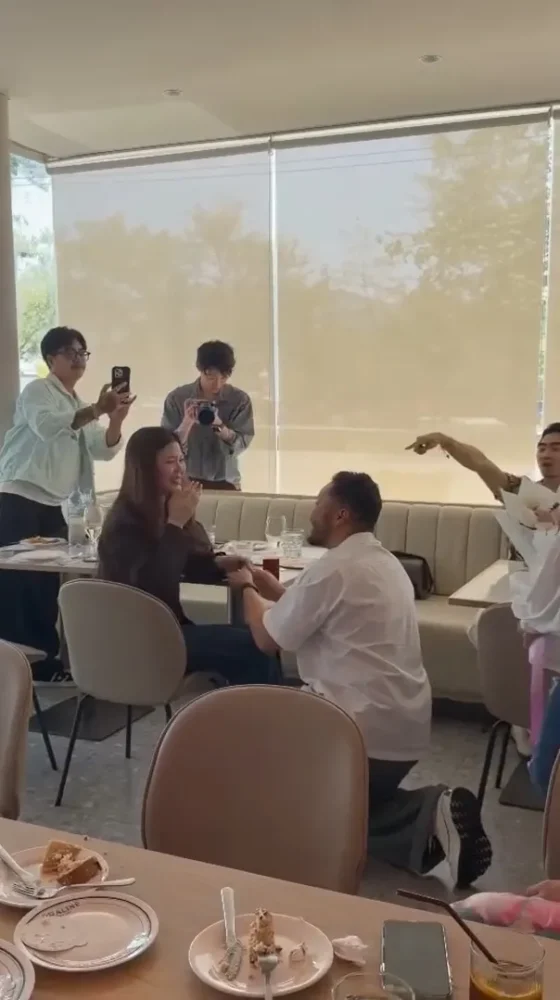สิ่งที่ทำให้ข่าวนี้ถูกพูดถึงอย่างรวดเร็ว ไม่ใช่แค่ภาพของชายหนุ่มที่คุกเข่าพร้อมแหวนในมือ แต่คือรายละเอียดเล็กๆ ที่รวมกันแล้วกลายเป็นภาพจำของคำว่า “พร้อมจะใช้ชีวิตด้วยกัน” เพราะในช่วงเวลานั้น มีทั้งเพื่อนสนิทที่ร่วมช่วยกันถือป้ายข้อความขอแต่งงาน มีเสียงเพลงสร้างบรรยากาศ และมีคนในครอบครัวอยู่พร้อมหน้า ทำให้การขอแต่งงานครั้งนี้ไม่ใช่แค่โมเมนต์ของคนสองคน แต่เป็นภาพของการเปิดประตูต้อนรับสมาชิกใหม่เข้าสู่ครอบครัวอย่างอบอุ่นจริงๆ