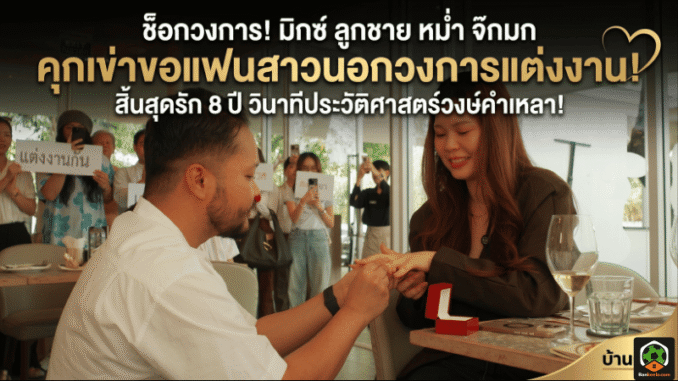 ข่าวการขอแต่งงานของคนดังมักได้รับความสนใจเสมอ เพราะสำหรับผู้ติดตามแล้ว มันไม่ใช่แค่ “ข่าวบันเทิง” แต่คือการได้เห็นพัฒนาการของชีวิตคนที่พวกเขารู้จักผ่านหน้าจอ ตั้งแต่วันเริ่มต้นความรัก จนถึงวันที่ตัดสินใจก้าวไปอีกขั้นหนึ่ง และในกรณีของมิกซ์ ยิ่งมีมิติของความเป็นลูกชายหม่ำ จ๊กมก เข้ามาเกี่ยวข้อง ก็ยิ่งเพิ่มแรงสนใจจากสาธารณะอย่างหลีกเลี่ยงไม่ได้