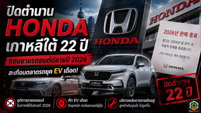 ปิดตำนาน Honda เกาหลีใต้ 22 ปี ถอนขายรถยนต์ปลายปี 2026 สะเทือนตลาดรถยุค EV เดือด