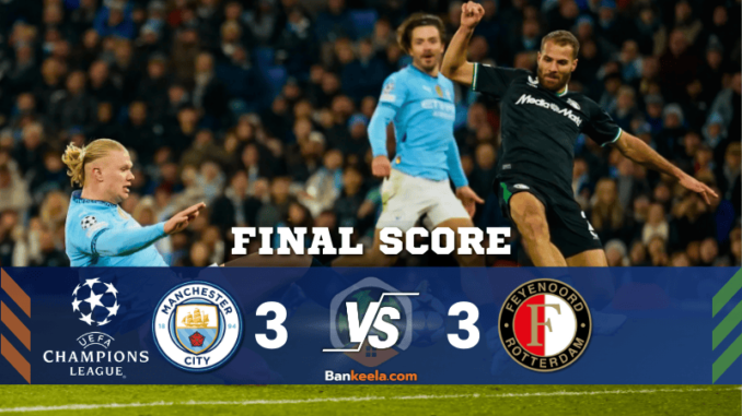 ยูฟ่าแชมเปียนส์ลีก: แมนเชสเตอร์ ซิตี้ เสมอสุดมันส์ เฟเยนูร์ด 3-3 ดราม่าจนนาทีสุดท้าย!