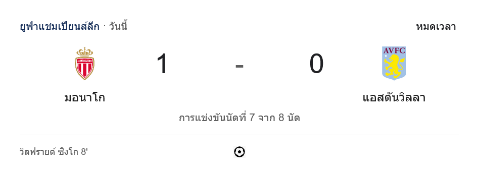สำหรับโปรแกรมถัดไปของทั้งสองทีม ต้องรอติดตามใน ตารางบอล อย่างใกล้ชิด โดยโมนาโกต้องเดินหน้าเก็บแต้มเพิ่มเพื่อโอกาสเข้ารอบ ส่วนแอสตัน วิลล่า จำเป็นต้องเรียกฟอร์มเก่งกลับมาให้ได้เร็วที่สุด