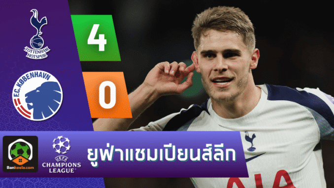 ค่ำคืนแห่งศึกยูฟ่าแชมเปียนส์ลีกที่ท็อตแน่ม ฮ็อทสเปอร์ สเตเดียม แฟนบอลที่กดเช็กหน้าเว็บ ผลบอลสด กันรัวๆ ต้องสะดุ้งเมื่อเห็นสกอร์ไหลไม่หยุด สเปอร์ส เปิดบ้านอัด เอฟซี โคเปนเฮเก้น ไปถึง 4-0 ทั้งๆ ที่ต้องเล่นแค่ 10 คน ตั้งแต่นาทีที่ 56 แต่ยังคุมเกมเอาอยู่ทุกจังหวะ