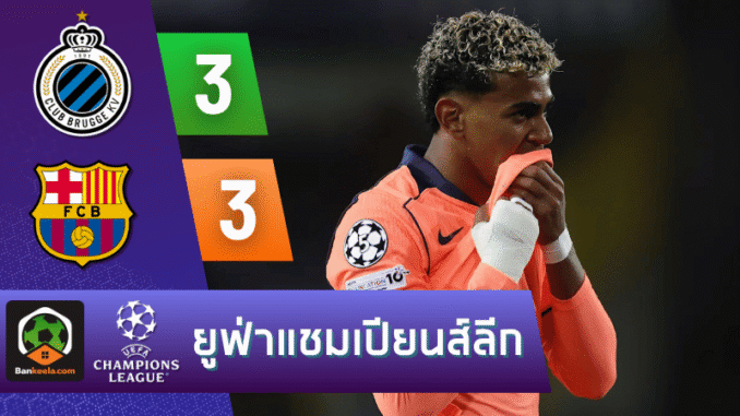 - ⏱️ FT จบเกม คลับบรูซ เสมอ บาร์เซโลน่า 3-3