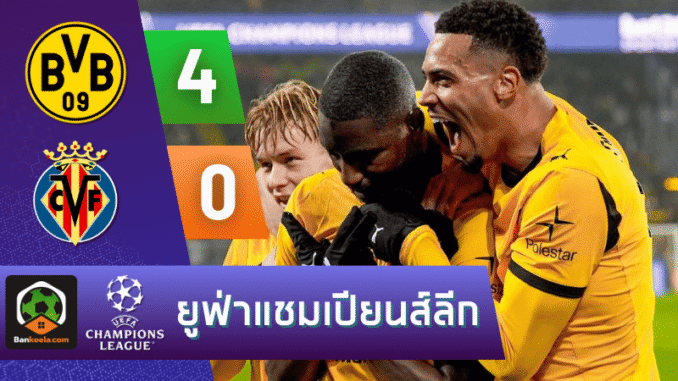 จาก : ผลบอลสด ยูฟ่าแชมเปียนส์ลีก ระหว่าง โบรุสเซีย ดอร์ทมุนด์ 4-0 บียาร์เรอัล วันนี้ 26/11/68 – บ้านกีฬา