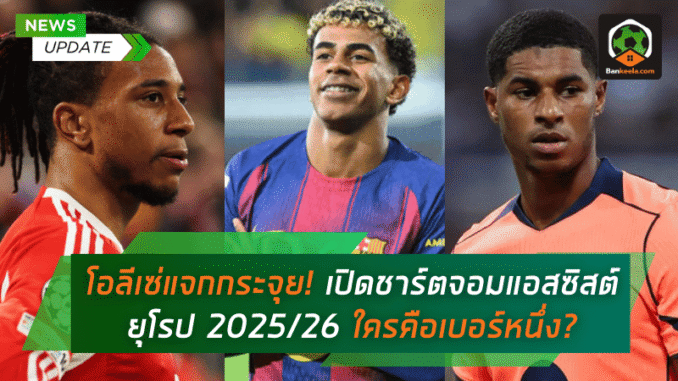 ศึก 5 ลีกใหญ่ยุโรปตอนนี้ไม่ได้วัดกันแค่ใครยิงเยอะ แต่ใครคือ จอมแอสซิสต์ ตัวปั้นเกมให้เพื่อนยิงก็สำคัญไม่แพ้กัน ฤดูกาล 2025/26 ชื่อที่ยืนหนึ่งเหนือใครคือ ไมเคิล โอลีเซ่ สตาร์ตัวรุกของ บาเยิร์น มิวนิค ที่ยึดตำแหน่งผู้นำการจ่ายสุดโหดไว้ที่ 14 แอสซิสต์ จากทุกรายการระดับสโมสร ขณะเดียวกัน เวที พรีเมียร์ลีก ก็มีตัวแทนติดโผหลายคนทั้งจาก แมนเชสเตอร์ ยูไนเต็ด และ แมนเชสเตอร์ ซิตี้ รวมไปถึงบรรดาสตาร์จาก ลา ลีกา, บุนเดสลีกา และ ลีก เอิง ที่ช่วยกันยกระดับมาตรฐานเกมรุกทั่วยุโรปให้เดือดกว่าเดิม