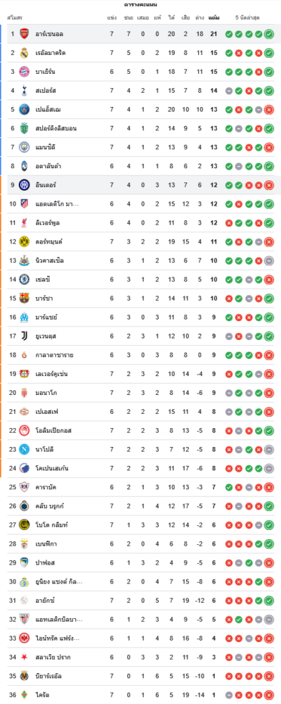 ชัยชนะนัดนี้ทำให้อาร์เซนอลยึดจ่าฝูงตารางรอบลีกยูฟ่า แชมเปี้ยนส์ ลีกอย่างแข็งแกร่ง เล่นไป 7 นัด ชนะรวด 7 นัด ยิง 20 เสียเพียง 2 ประตู เก็บ 21 แต้มเต็ม ทิ้งเรอัล มาดริดอันดับสองที่มี 17 แต้มออกไปอีก กดดันคู่แข่งโดยตรงว่าถ้าจะเบียดแย่งอันดับบนๆ ต้องไม่พลาดเลยในเกมที่เหลือ ซึ่งสำหรับคนดูที่เปิดหน้า ตารางบอล ตามเช็คอยู่ ถือว่าเห็นภาพชัดเจนว่าปืนใหญ่ปีนี้ไม่ได้มาเล่นๆ