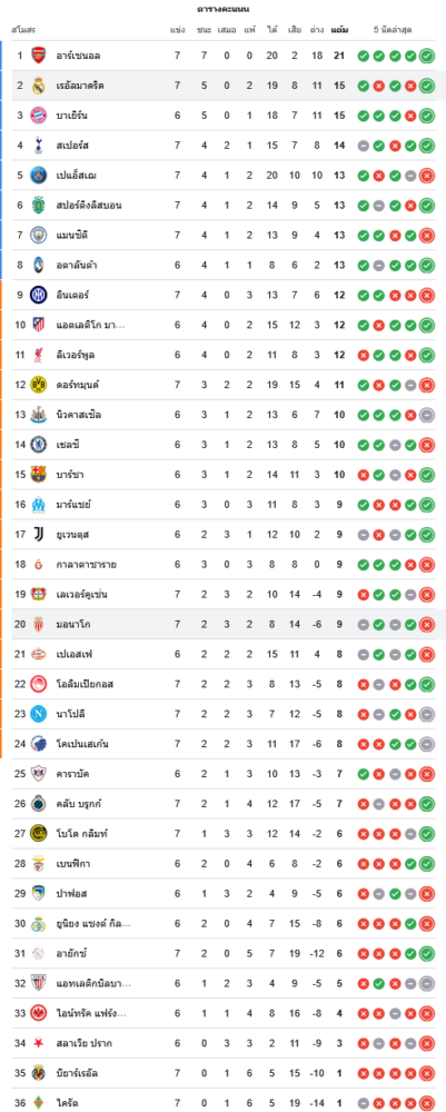 📌 สถานการณ์ในตารางคะแนนยูฟ่า แชมเปี้ยนส์ ลีก