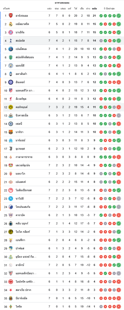 📌 สถานการณ์ในตารางคะแนนยูฟ่า แชมเปียนส์ ลีก รอบลีก