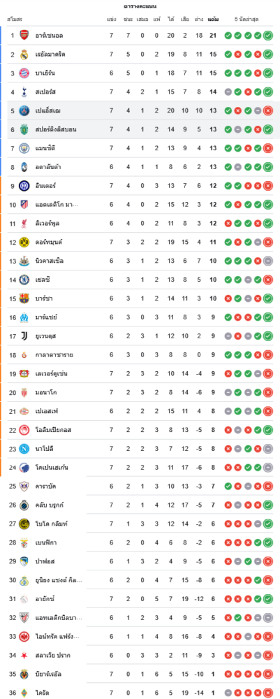 📌 สถานการณ์ในตารางคะแนนยูฟ่า แชมเปี้ยนส์ ลีก