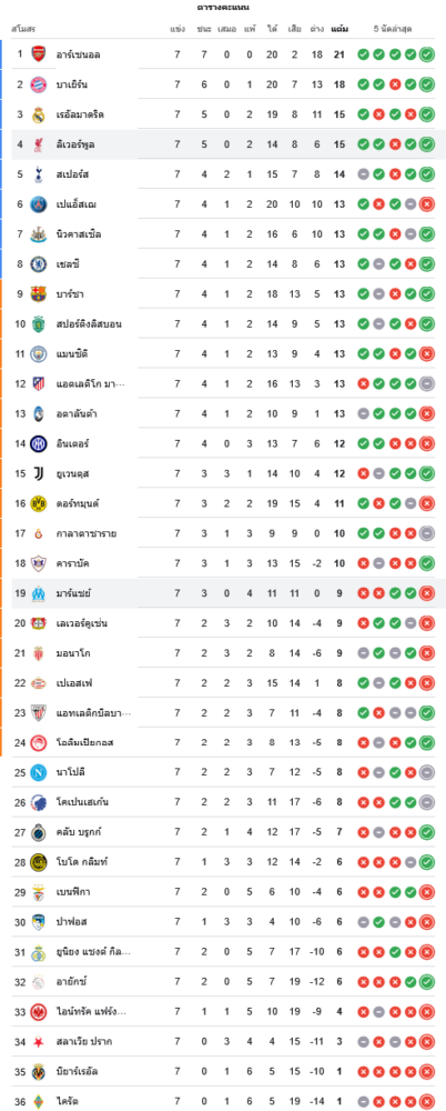 จากตารางลีกเฟสล่าสุด ลิเวอร์พูลกระโดดขึ้นไปรั้งอันดับ 4 ของกลุ่มรวม มี 15 คะแนนจาก 7 นัด สถิติชนะ 5 แพ้ 2 ยิงได้ 14 เสีย 8 ประตู ได้เปรียบเรื่องผลต่างประตูได้เสียและวางตัวเองในโซนลุ้นเข้ารอบน็อกเอาต์แบบเต็มตัว ชัยชนะนัดเยือนมาร์กเซยครั้งนี้ไม่เพียงเพิ่มแต้ม แต่ยังส่งสัญญาณให้คู่แข่งทีมอื่นในยุโรปเห็นว่าหงส์แดงของสล็อตเริ่มลงตัวทั้งเกมรุกและเกมรับ