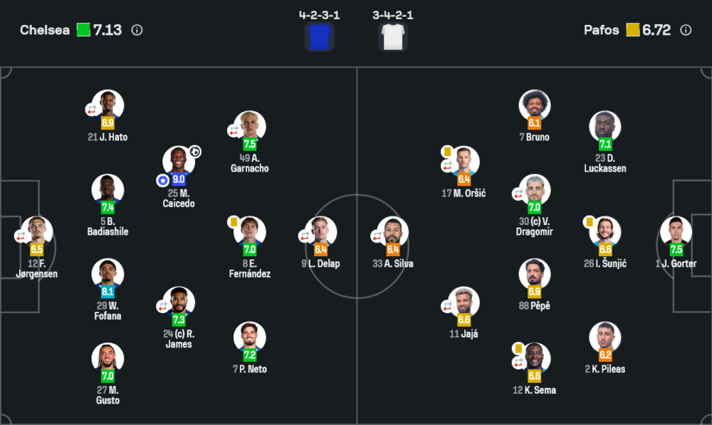 - 8 เอ็นโซ่ แฟร์นันเดซ (7.0) คุมจังหวะเกม รับ-รุก เชื่อมบอลแทบทุกจังหวะ