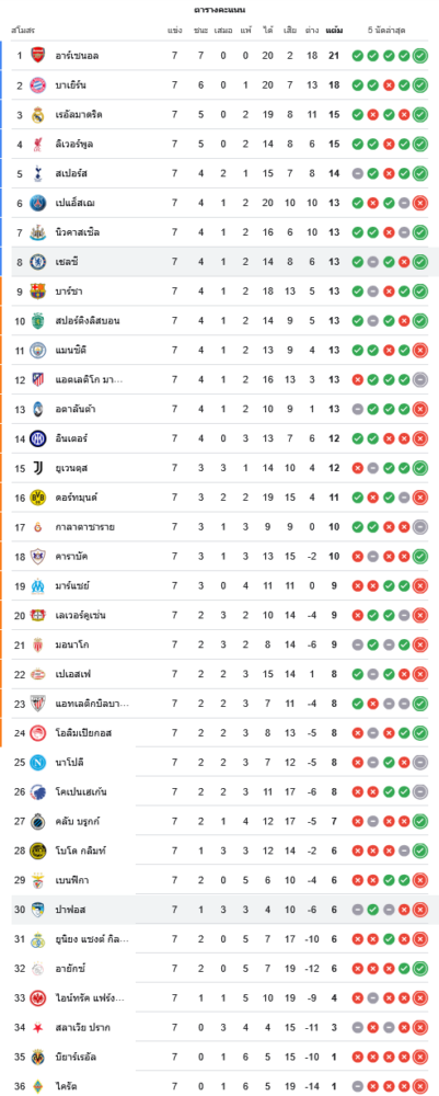 📈 สถานการณ์ในตารางคะแนนยูฟ่า แชมเปี้ยนส์ ลีก