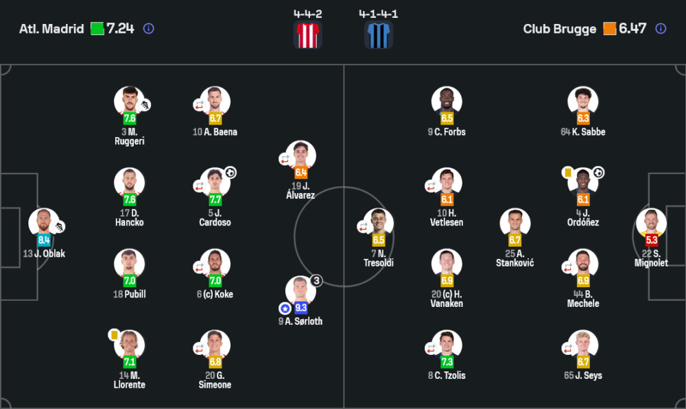 - Jan Oblak เรตติ้ง 8.4 เซฟสำคัญหลายจังหวะ โดยเฉพาะช่วงท้ายเกมที่ช่วยล็อกชัยชนะ