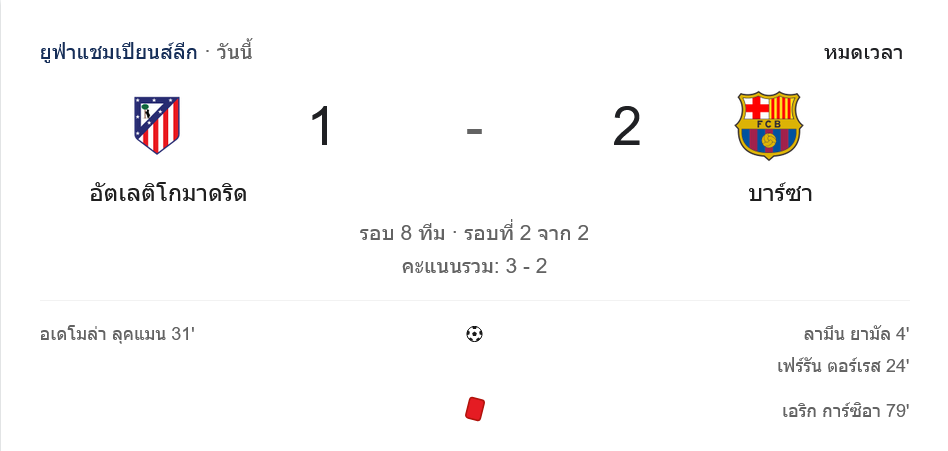 จาก : ผลบอลสด ยูฟ่า แชมเปี้ยนส์ ลีก ระหว่าง แอตเลติโก้ มาดริด 1-2 บาร์เซโลน่า วันนี้ 15/4/69 – บ้านกีฬา