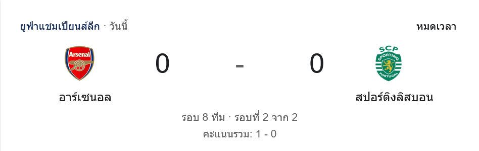 แม้ ผลบอลสด จะลงเอยแบบจืด ๆ แต่รูปเกมไม่ได้น่าเบื่อ อาร์เซนอลเป็นฝ่ายคุมเกม บุกมากกว่า และสร้างแรงกดดันต่อเนื่อง ขณะที่สปอร์ติ้งมาด้วยเกมรับที่เหนียวแน่นและสวนกลับเป็นระยะ ทำให้ตลอด 90 นาทีเต็มไปด้วยจังหวะลุ้นและความกดดันทุกช่วงของเกม