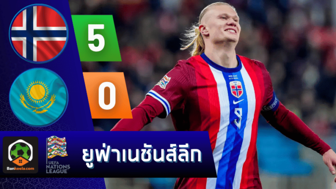 การแข่งขันศึก ยูฟ่าเนชันส์ลีก 2024 ระหว่าง นอร์เวย์ พบ คาซัคสถาน บ้านผลบอลรายงานว่าเป็นเกมที่เจ้าถิ่นนอร์เวย์โชว์ฟอร์มสุดแกร่ง เปิดบ้านถล่มผู้มาเยือนคาซัคสถานไปด้วยสกอร์ขาดลอย 5-0 เออร์ลิง ฮาแลนด์ ศูนย์หน้าตัวเก่งของทีม ทำแฮตทริกได้อย่างน่าประทับใจ