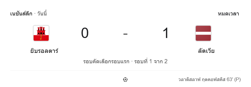 • ⏱️ นาที 90+4 หมดเวลา ยิบรอลตาร์ แพ้ ลัตเวีย 0-1