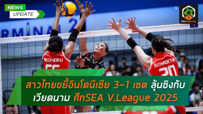 ทัพ วอลเลย์บอลหญิงทีมชาติไทย ยังคงโชว์ฟอร์มร้อนแรงไม่หยุด หลังระเบิดฟอร์มสุดดุดันในวันที่ 2 สิงหาคม 2568 แซงเอาชนะ อินโดนีเซีย ไปได้แบบสุดมันส์ 3-1 เซต ในศึก SEA V.League 2025 สนามแรกที่จัดขึ้น ณ ศูนย์การค้าเทอร์มินอล 21 โคราช จังหวัดนครราชสีมา พร้อมเก็บชัยชนะสองนัดรวด ตีตั๋วสู่แมตช์ตัดสินแชมป์กับเจ้าภาพร่วมอย่างเวียดนามในวันอาทิตย์นี้