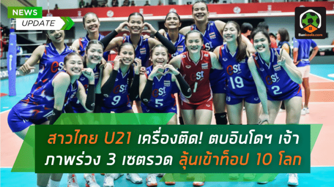 ทัพ วอลเลย์บอลหญิงทีมชาติไทยรุ่นอายุไม่เกิน 21 ปี เดินหน้าโชว์ฟอร์มสุดแกร่ง ไล่ต้อนเจ้าภาพ อินโดนีเซีย แบบไม่ไว้หน้า ด้วยสกอร์ขาดลอย 3-0 เซต ในการแข่งขันรอบจัดอันดับ 9-16 รายการ วอลเลย์บอลหญิงชิงแชมป์โลกรุ่น U21 ปี 2025 ที่ประเทศอินโดนีเซีย พร้อมตีตั๋วเข้าสู่รอบชิงอันดับ 9-12 ได้อย่างยอดเยี่ยม โดยมีคิวดวลเดือดกับ เช็กเกีย ในรอบถัดไป เพื่อลุ้นทำอันดับติด Top 10 ของโลก ให้ได้