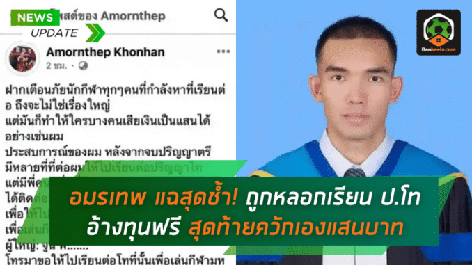 เรื่องนี้ถูกเปิดเผยผ่านเฟซบุ๊กส่วนตัวของเจ้าตัว “Amornthep Khonhan” เมื่อวันที่ 6 ตุลาคม 2568 ซึ่งตรงกับวันเกิดครบ 30 ปี ของเจ้าตัว โดยเขาได้โพสต์ข้อความเตือนภัยอย่างจริงจังว่า อย่าเชื่อคำพูดของคนที่อ้างว่าจะสนับสนุนให้เรียนฟรี เพราะอาจตกเป็นเหยื่อเหมือนตนเอง ที่สุดท้ายต้องเสียเงินจำนวนมหาศาล ทั้งที่ตั้งใจจะเรียนเพื่อพัฒนาตัวเองและช่วยสถาบันแข่งขันกีฬา