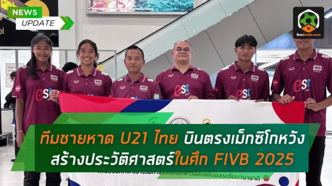 วันที่ 13 ตุลาคม 2568 — ความเคลื่อนไหวของ ทีมวอลเลย์บอลชายหาดทีมชาติไทย รุ่นอายุต่ำกว่า 21 ปี เป็นที่จับตาของแฟนลูกยางทั่วประเทศ หลังออกเดินทางจากประเทศไทยมุ่งหน้าสู่ ประเทศเม็กซิโก เพื่อเข้าร่วมการแข่งขัน FIVB U21 Beach Volleyball World Championships 2025 รายการระดับโลกที่รวมสุดยอดนักตบชายหาดรุ่นเยาว์จากทั่วทุกมุมโลกมาชิงชัย