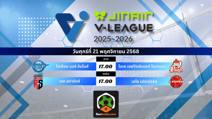โปรแกรมการแข่งขันวอลเลย์บอล Jin Air V-League 2025/26 (ศุกร์ที่ 21 พฤศจิกายน 2568)
