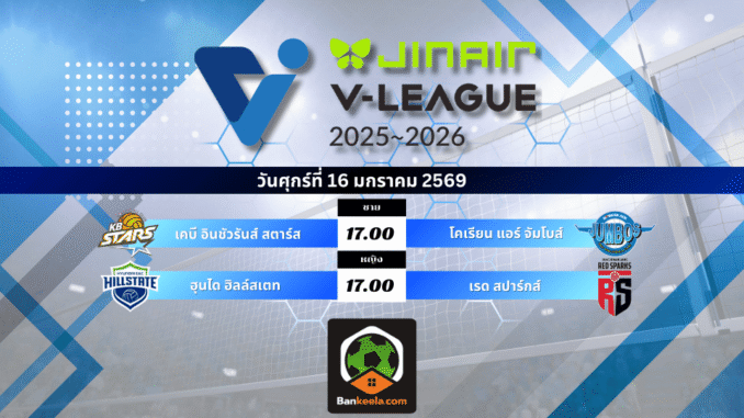 โปรแกรมการแข่งขันวอลเลย์บอล Jin Air V-League 2025/26 (ศุกร์ที่ 16 มกราคม 2569)