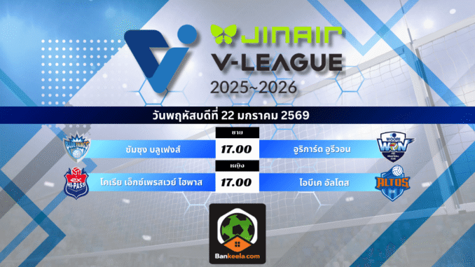 โปรแกรมการแข่งขันวอลเลย์บอล Jin Air V-League 2025/26 (พฤหัสบดีที่ 22 มกราคม 2569)