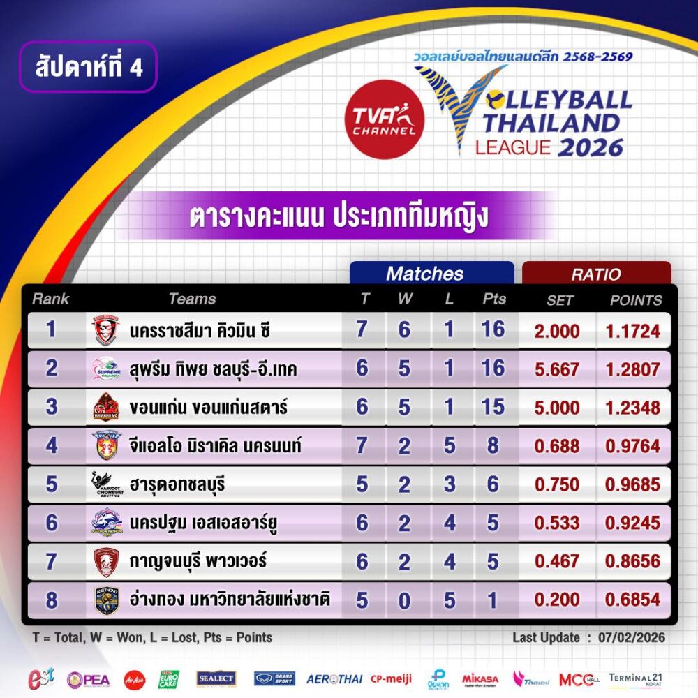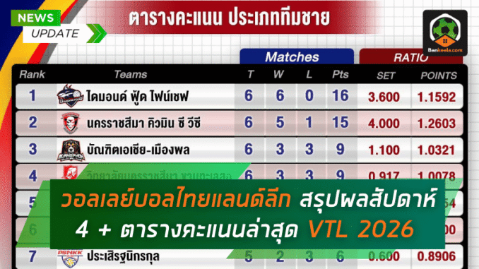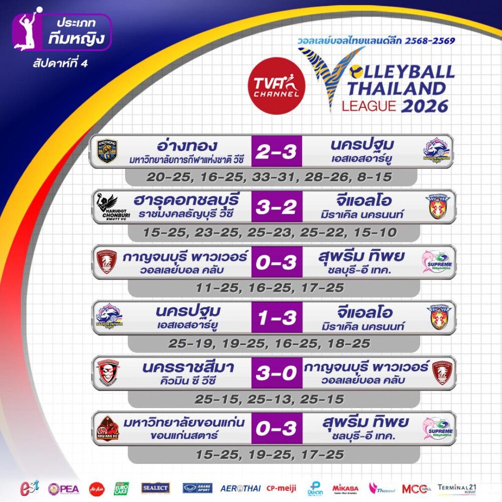 🏐 ภาพรวมสัปดาห์ 4 ของ วอลเลย์บอลไทยแลนด์ลีก (VTL 2026)