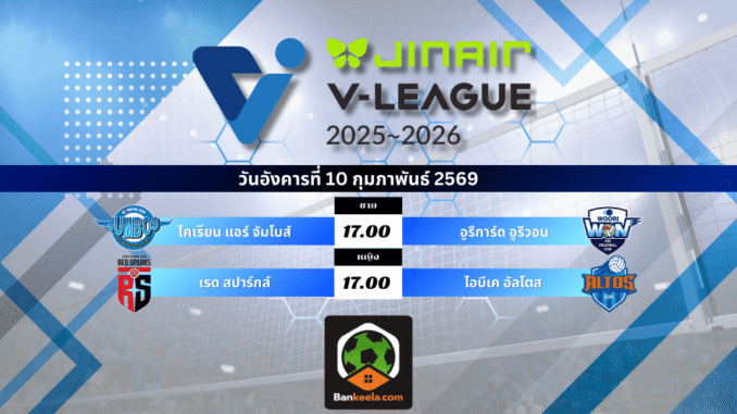 โปรแกรมการแข่งขันวอลเลย์บอล Jin Air V-League 2025/26 (อังคารที่ 10 กุมภาพันธ์ 2569)