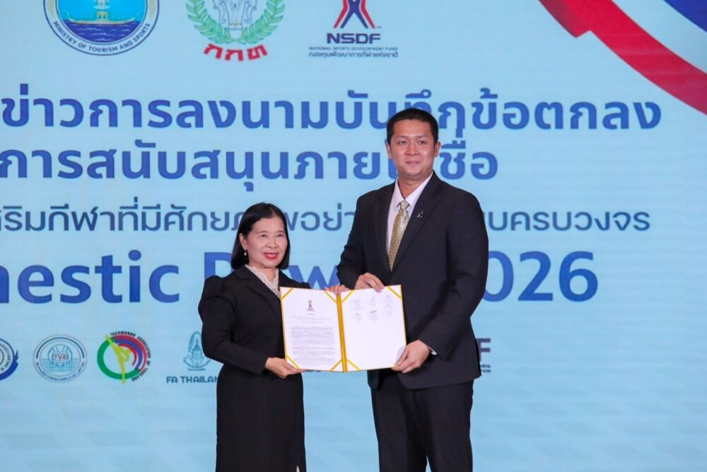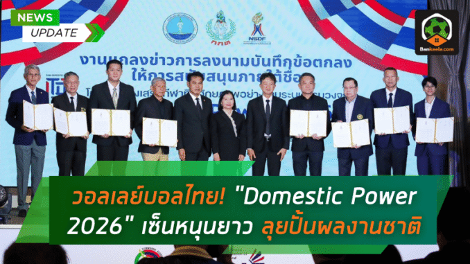 (12 ก.พ.) พ.อ.อ.นัฐพงษ์ เกษาพันธ์ เลขาธิการ สมาคมกีฬาวอลเลย์บอลแห่งประเทศไทย เข้าร่วมงานแถลงข่าวการลงนามบันทึกข้อตกลงสนับสนุนโครงการ Domestic Power 2026 เพื่อเดินหน้าขับเคลื่อน พัฒนากีฬาไทย อย่างต่อเนื่อง โดยมี ดร.วนิดา พันธ์สะอาด รองปลัด กระทรวงการท่องเที่ยวและกีฬา ทำหน้าที่ประธานในพิธี บรรยากาศของงานสะท้อนชัดว่าโปรเจกต์นี้ไม่ได้มาเล่นๆ แต่เป็นการวางหมากระยะยาวที่หวังผลจริงกับผลงานของประเทศ