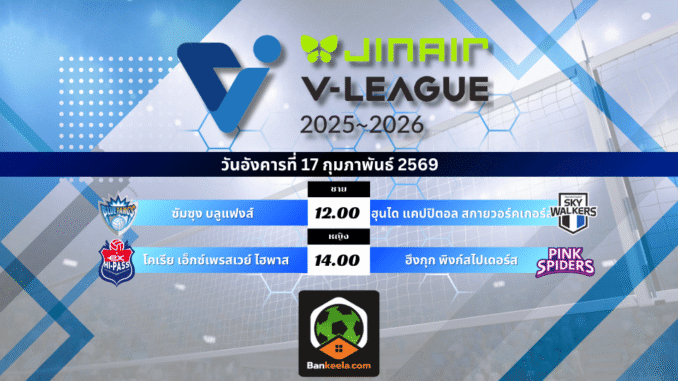 โปรแกรมการแข่งขันวอลเลย์บอล Jin Air V-League 2025/26 (อังคารที่ 17 กุมภาพันธ์ 2569)