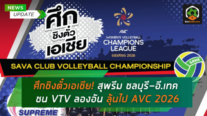 ถึงเวลาที่แฟนวอลเลย์บอลไทยต้องรวมพลังเชียร์หนึ่งเดียวของประเทศ! สุพรีม ทิพย ชลบุรี – อี.เทค แชมป์ไทยแลนด์ ลีก 2025 ตัวแทนไทย เตรียมลงสนามในศึก SAVA CLUB VOLLEYBALL CHAMPION (สโมสรอาเซียน) เพื่อชิงตั๋วไปลุยรายการใหญ่ระดับทวีป AVC Women’s Champions League Goyang 2026 (สโมสรเอเชีย) งานนี้ไม่ใช่แค่ศักดิ์ศรี แต่คือโอกาสยกระดับชื่อเสียงวอลเลย์บอลสโมสรไทยบนเวทีเอเชีย