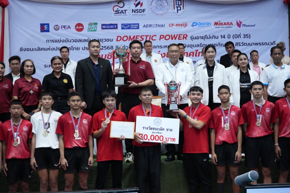 สรุปผลการแข่งขัน วอลเลย์บอลยุวชน DOMESTIC POWER รุ่นอายุไม่เกิน 14 ปี ชิงชนะเลิศแห่งประเทศไทย (ปีที่ 35) ประจำปี 2568 ประเภททีมชาย มีดังนี้