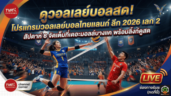 ถึงเวลาที่แฟนลูกยางต้องตั้งนาฬิกา เพราะ วอลเลย์บอล ไทยแลนด์ ลีก 2026 เดินหน้าสู่เลก 2 แบบเข้มข้นทุกแต้ม ทุกเซตไม่มีคำว่า “ผ่อนเกม” ใครกำลังตามหาโปรแกรมแบบชัด ๆ พร้อมช่องถ่ายทอดสด ดูง่าย อ่านปุ๊บรู้ปั๊บว่าต้องเปิดดูคู่ไหน บ้านกีฬารวมให้ครบในที่เดียว ทั้งรายชื่อทีมที่ลงสนาม และตารางแข่งสัปดาห์ที่ 8 ที่ขนความเดือดไปกองไว้ที่บางแค