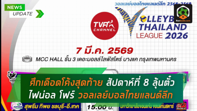 ศึกเดือดโค้งสุดท้าย สัปดาห์ที่ 8 ลุ้นตั๋วไฟน่อล โฟร์ วอลเลย์บอลไทยแลนด์ลีก 2026 ระเบิดความมันส์ที่บางแค