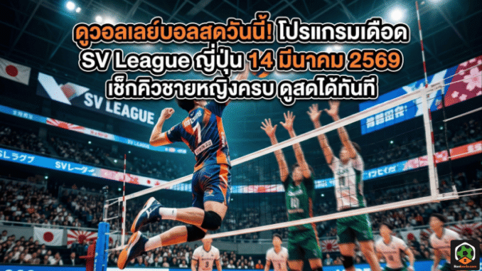 ศึก วอลเลย์บอลญี่ปุ่น เดินหน้าแบบไม่มีผ่อน เมื่อโปรแกรม SV League Men / Women วันที่ 14 มีนาคม 2569 จัดมาให้แฟนลูกยางได้ตามลุ้นกันตั้งแต่ช่วงสาย โดยมีทั้งเกมฝั่งชายและฝั่งหญิงที่น่าสนใจ เหมาะสำหรับแฟนกีฬาที่กำลังมองหาโปรแกรม ดูวอลเลย์บอลสด และอัปเดต ผลวอลเลย์บอล แบบทันเกมในวันเดียวกัน