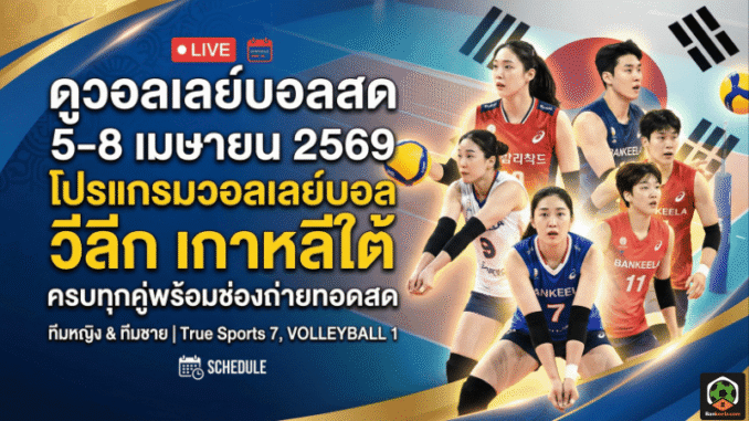 ดูวอลเลย์บอลสด 5-8 เมษายน 2569 โปรแกรมวอลเลย์บอล วีลีก เกาหลีใต้ ครบทุกคู่พร้อมช่องถ่ายทอดสด