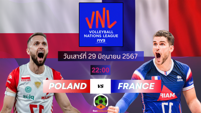 ถ่ายทอดสด วอลเลย์บอลวันนี้ โปแลนด์ vs ฝรั่งเศส การแข่งขันวอลเลย์บอลชาย เนชันส์ ลีก 2024 (VNL 2024) รอบสุดท้าย หรือรอบก่อนรองชนะเลิศ ครบทุกคู่ ดูวอลเลย์บอลย้อนหลัง