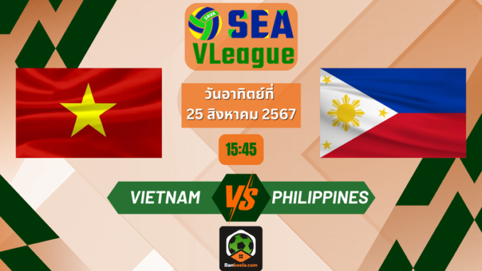 ถ่ายทอดสด วอลเลย์บอลวันนี้ เวียดนาม VS ฟิลิปปินส์ ในการแข่งขัน ซี วี ลีก 2024 (SEA V League 2024) ระหว่างวันที่ 2-25 สิงหาคม 2567 ซึ่งจะจัดขึ้นที่สาธารณรัฐอินโดนีเซีย