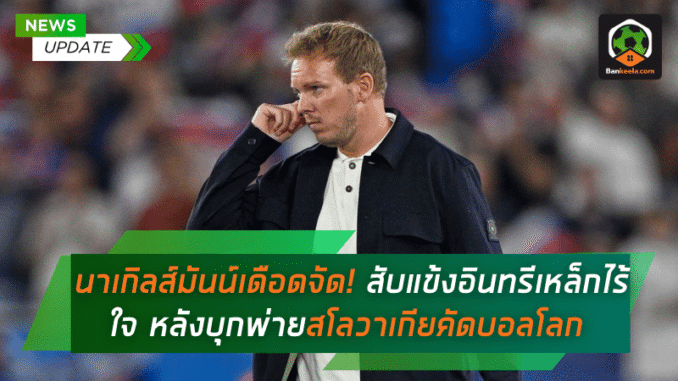 ศึกคัดเลือกฟุตบอลโลก 2026 โซนยุโรป กลุ่มเอ นัดเปิดหัว กลายเป็นฝันร้ายของแฟนบอล ทีมชาติเยอรมนี เมื่อพวกเขาบุกไปพ่าย สโลวาเกีย 0-2 แบบหมดสภาพเมื่อคืนวันที่ 4 กันยายนที่ผ่านมา ผลการแข่งขันครั้งนี้ไม่เพียงทำให้ “อินทรีเหล็ก” เริ่มต้นเส้นทางคัดบอลโลกได้อย่างน่าผิดหวัง แต่ยังทำให้ ยูเลียน นาเกิลส์มันน์ เฮดโค้ชวัยหนุ่มถึงกับระเบิดอารมณ์ออกมาอย่างรุนแรง