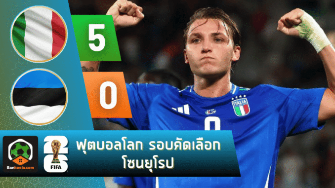 จาก : ผลบอลสด ฟุตบอลโลก 2026 รอบคัดเลือก โซนยุโรป กลุ่ม I ระหว่าง อิตาลี 5-0 เอสโตเนีย วันนี้ 6/9/68 – บ้านกีฬา