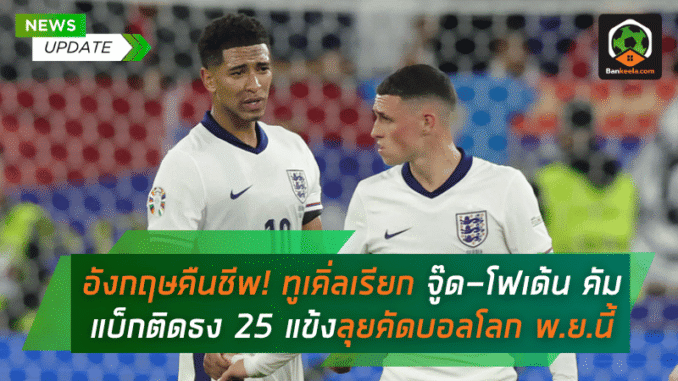 ศึก คัดบอลโลก 2026 โซนยุโรป กำลังลุกเป็นไฟ เมื่อ โธมัส ทูเคิ่ล ประกาศรายชื่อ ทีมชาติอังกฤษ ชุด 25 คนเต็มสูบสำหรับเดือนพฤศจิกายนนี้ พร้อมข่าวดีที่แฟนบอลผู้ดีเฝ้ารอ — การคัมแบ็กของ จู๊ด เบลลิงแฮม, ฟิล โฟเด้น และ นิค โป๊ป รวมถึงการเปิดตัวครั้งแรกของดาวรุ่งอนาคตไกล อเล็กซ์ สกอตต์ จากบอร์นมัธ ที่ถูกเรียกติดธงเป็นครั้งแรกในชีวิตค้าแข้ง