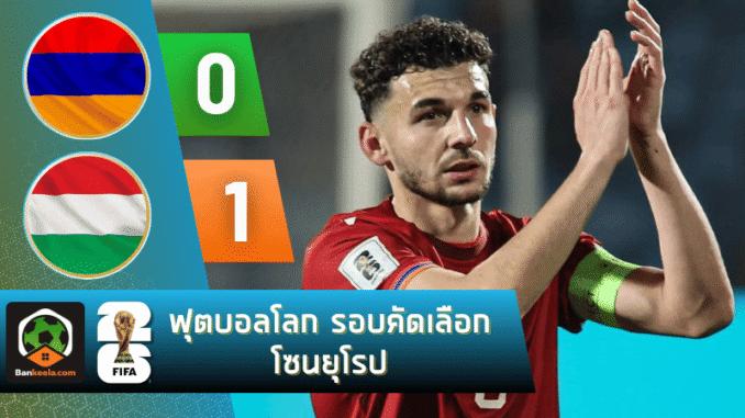 เกมนี้เตะกันที่บ้านของอาร์เมเนียในศึกฟุตบอลโลก รอบคัดเลือก โซนยุโรป กลุ่ม F ผลงานจากหน้า ผลบอลสด ขึ้นชัดเจนว่าฮังการีบุกมาคว้า 3 แต้มสำคัญด้วยสกอร์ 1-0 จากประตูเดียวของ บาร์นาบาส วาร์ก้า ทำให้รูปการลุ้นโควต้าไปเล่นรอบสุดท้ายยังเดือดต่อเนื่อง ส่วนอาร์เมเนียพลาดโอกาสทองที่จะขยับออกจากบ๊วยกลุ่ม