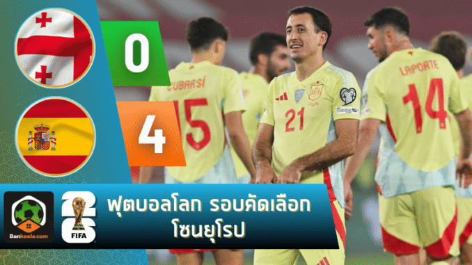 จาก : ผลบอลสด ฟุตบอลโลก 2026 รอบคัดเลือก โซนยุโรป ระหว่าง จอร์เจีย 0-4 สเปน วันนี้ 16/11/68 – บ้านกีฬา