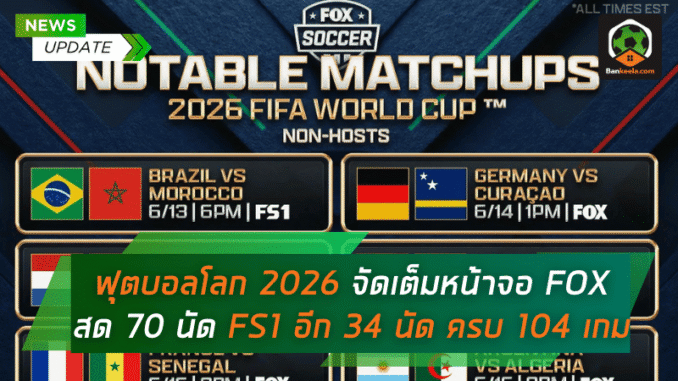 ฟุตบอลโลก 2026 จัดเต็มหน้าจอ FOX สด 70 นัด FS1 อีก 34 นัด ครบ 104 เกม