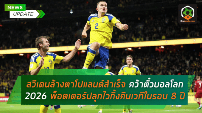 ทีมชาติสวีเดน กลับสู่เวที ฟุตบอลโลก 2026 ได้สำเร็จ หลังเฉือนโปแลนด์ 3-2 ในรอบชิงเพลย์ออฟเส้นทาง B ของยุโรป พร้อมล้างแค้นจากที่เคยแพ้คู่แข่งรายนี้ก่อนศึกกาตาร์ 2022